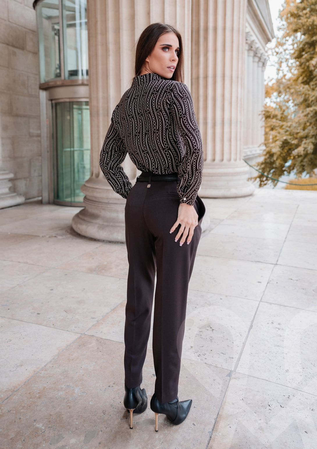 MAGENTA mintás kevert szálas ing – barna