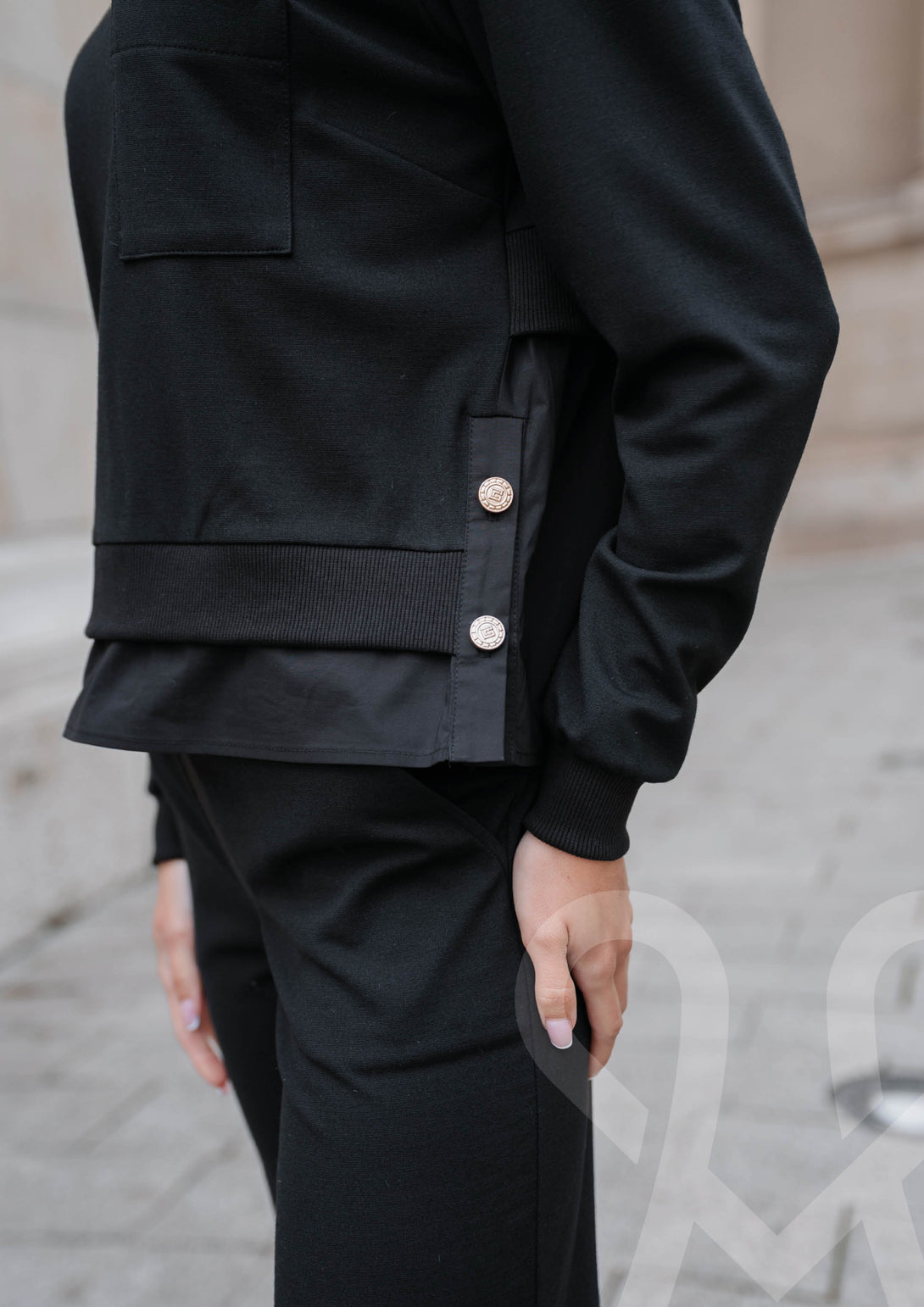A MAGENTA fekete pulóvere modern, kényelmes és sportosan elegáns darab, amely tökéletes a hétköznapi összeállításokhoz. Bő fazonú kialakítása lezser, könnyed megjelenést biztosít, miközben kellemes viseletet nyújt egész nap.